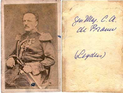 Dirk Jacob Albert Eduard de Brauw (1848-1914) was een zoon van O.I.L. generaal-majoor C.A. en Jacoba Elisabeth Maria van Heemskerk van Beest. Vader de Brauw kreeg in juni 1857 wegens ziekte verlof naar Nederland en keerde in februari 1860 terug naar Indië. Zijn gezin bleef nog een jaar in Nederland. Hij werd eerst benoemd tot commandant van de tweede militaire afdeling op Java en later in juni 1861 tot civiel en militair gouverneur van Sumatra's Westkust. Gedurende de laatste maanden van zijn leven was De Brauw bij voortduring ziekelijk en zelfs een verblijf in de Padangse Bovenlanden kon in zijn toestand geen verbetering brengen. Hij en zijn vrouw overleden kort na elkaar in februari 1862. Hij was pas 52 jaar. Indien hij niet was overleden dan was hij benoemd tot luitenant-generaal en commandant van het Indische leger. Deze benoeming was rond in maart dat jaar , maar helaas.