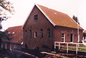 Het molen gebouw voor de restauratie (? Foto uit molengebouw) en nu (Foto 2007)