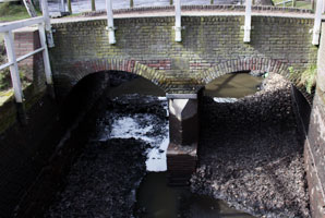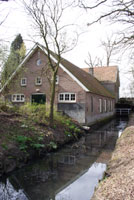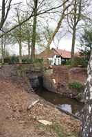 De wijerd aan de ander kant van de weg wordt gesaneerd en de frisse Wenumse beek; Molen vanaf de brug (Foto 2007)