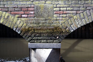 De brug over de oude zwolse weg.Inscriptie: D de I (Daniel de Jongh, I en J zijn inwisselbaar)1798. (Foto 2007)