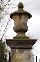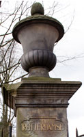 Het hek en het woonhuis gebouwd in 1916 en voor 2007 alweer gesloopt vanaf de Zwolse weg (Foto 1986) en detail van het gerestaureerde hek met de oorspronkelijke naam.