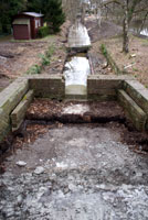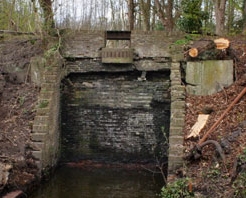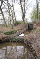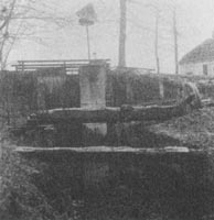 Bruggetje met op de achtergrond het stuwerk van de voormalige molen. (Foto 2007)